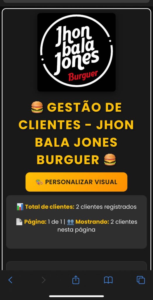 Painel administrativo para o negócio